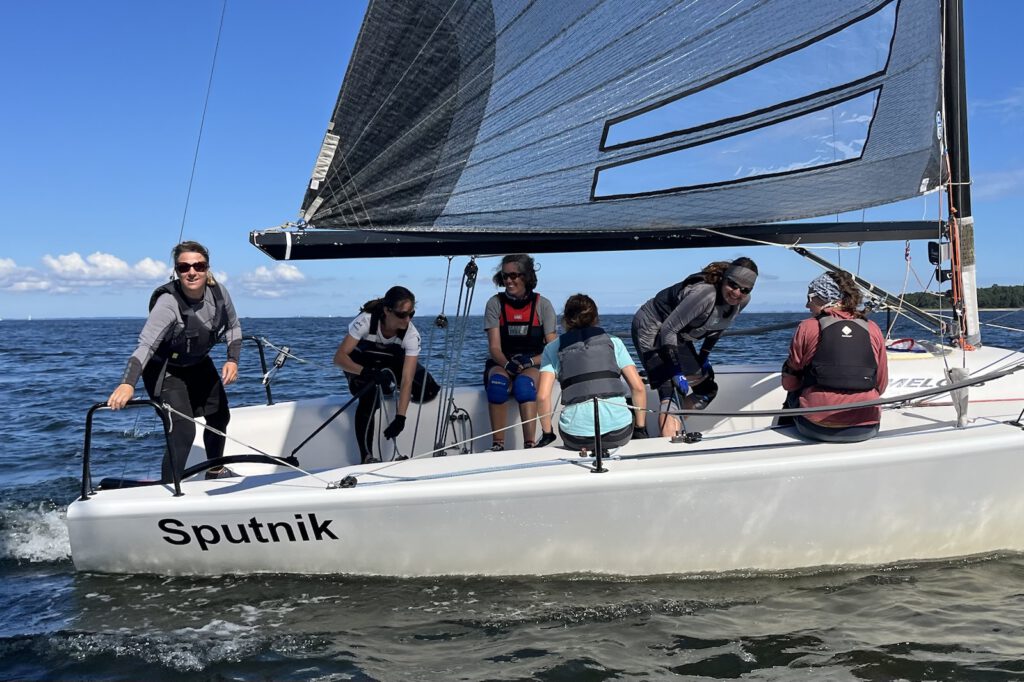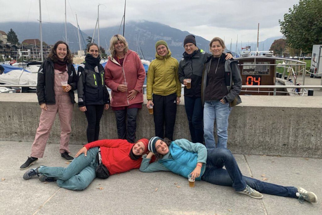 Wann beginnt eine Regatta? Beim Vorbereitungssignal, beim Auslaufen am Morgen oder beim Wettercheck am Vorabend? Für die Boddensprotten begann der diesjährige Heidi-Cup Wochen im Voraus mit der Crewplanung. Eine Nachricht in unsere Gruppe: „Wer kommt dieses Jahr mit in die Schweiz?“ führte zu sechs Meldungen innerhalb weniger Minuten. Was nun? Die Regatta im Ligaformat ist für vier bis maximal fünf Teilnehmerinnen ausgeschrieben. Also wurde kurzerhand beschlossen, ein zweites Team an den Start zu bringen, für das nun wiederum noch zwei weitere Mitseglerinnen gefunden werden mussten. Einige Telefonate später waren zwei neue Crewmitglieder rekrutiert und wurden Anfang September bei einem Training auf der Melges24 eingetrimmt.